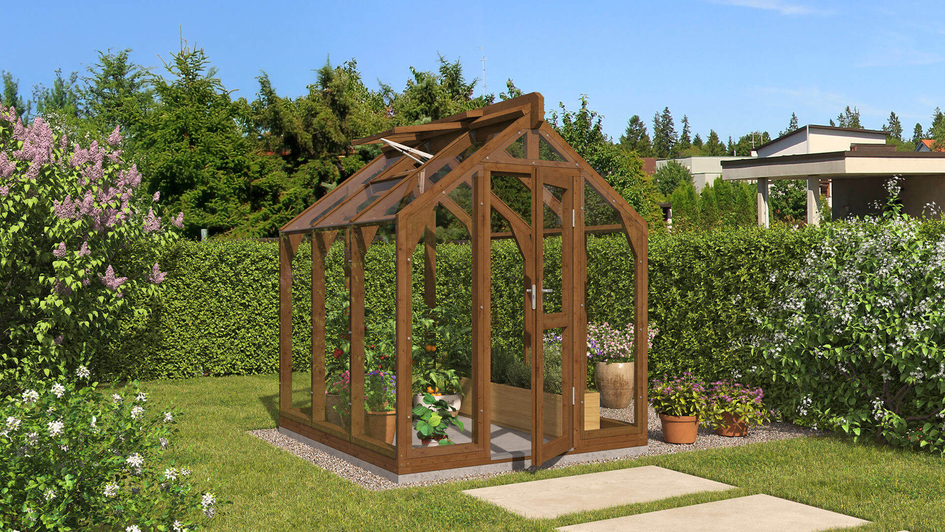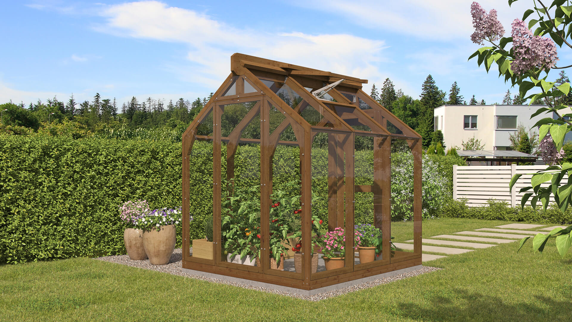 Lähe puidust kasvuhoone ei ole mõeldud ainult taimede kasvatamiseks – see võib olla hoopis kaunis aiapaviljon, kus saab keset rohelust lõõgastuda, einestada või külalisi võõrustada. Puidu loomulik soojus loob hubase ja kutsuva atmosfääri, muutes kasvuhoone elegantseks paviljoniks. Kasuta seda vaikse puhkepaigana, suvise söögitoa või loovtööruumina – see kohandub igaks aastaajaks ja sündmuseks. See on koht, kus aeg peatub.