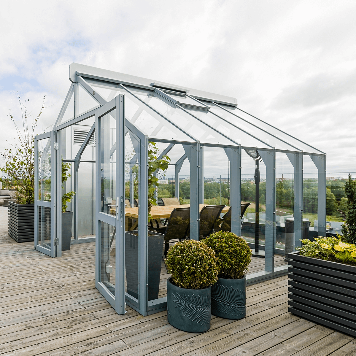 Kasvuhoone No 1 on oma ainulaadse ja patenteeritud klaas-raamil lahendusega traditsioonilise käsitöö ja kaasaegse tehnoloogia koostöö tulemus. Iga termopuidust kasvuhoone valmib kogenud meistrite käe all, tagades kõrgeima kvaliteedi ja vastupidavuse. Meie puidust kasvuhooned on spetsiaalselt projekteeritud Põhjamaade kliimatingimusi silmas pidades, et pakkuda usaldusväärset toimivust ka karmides ilmastikuoludes.