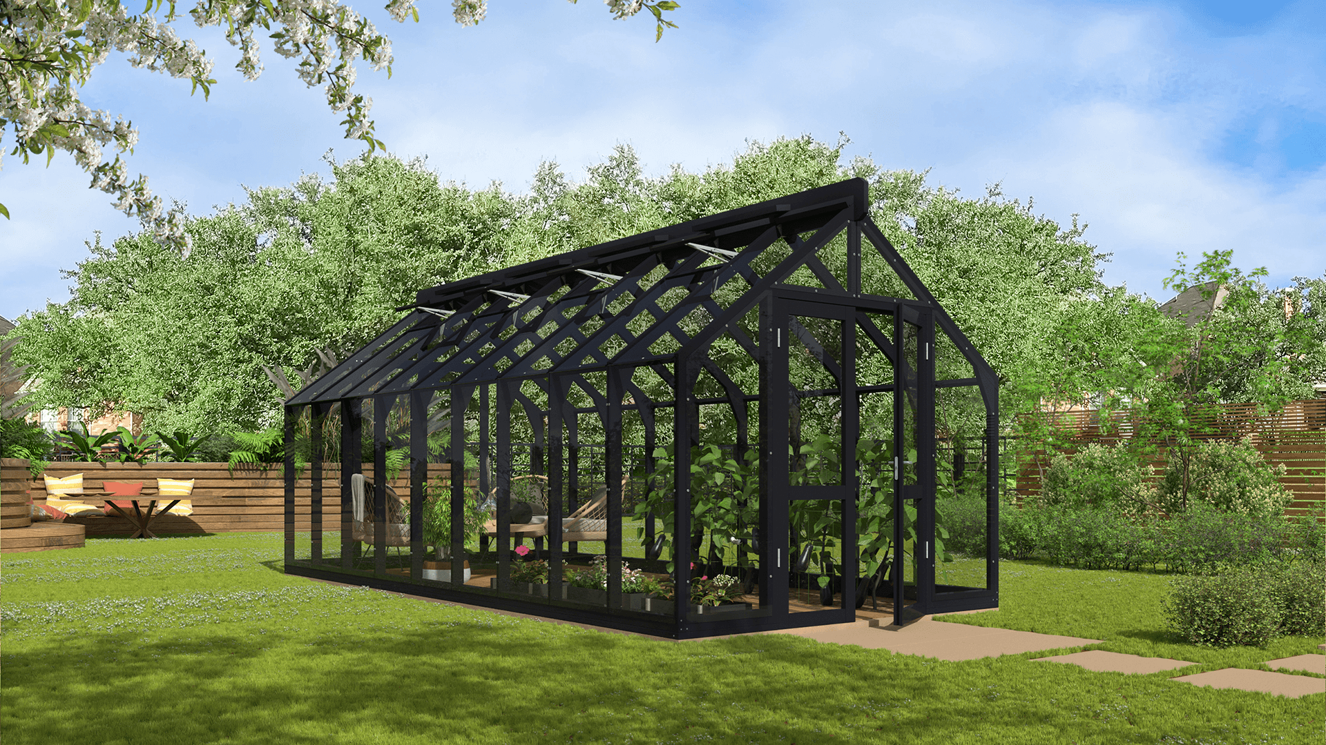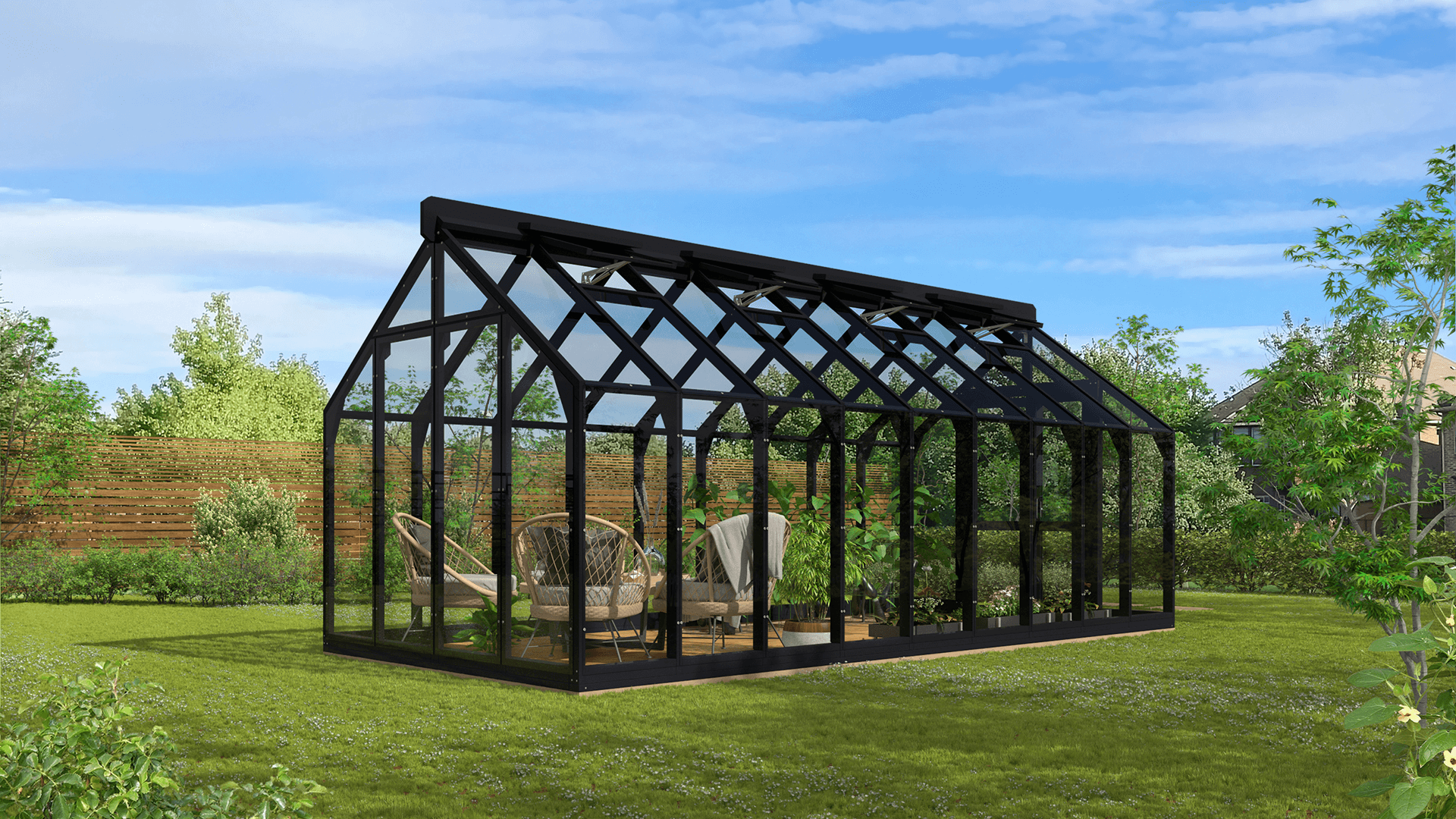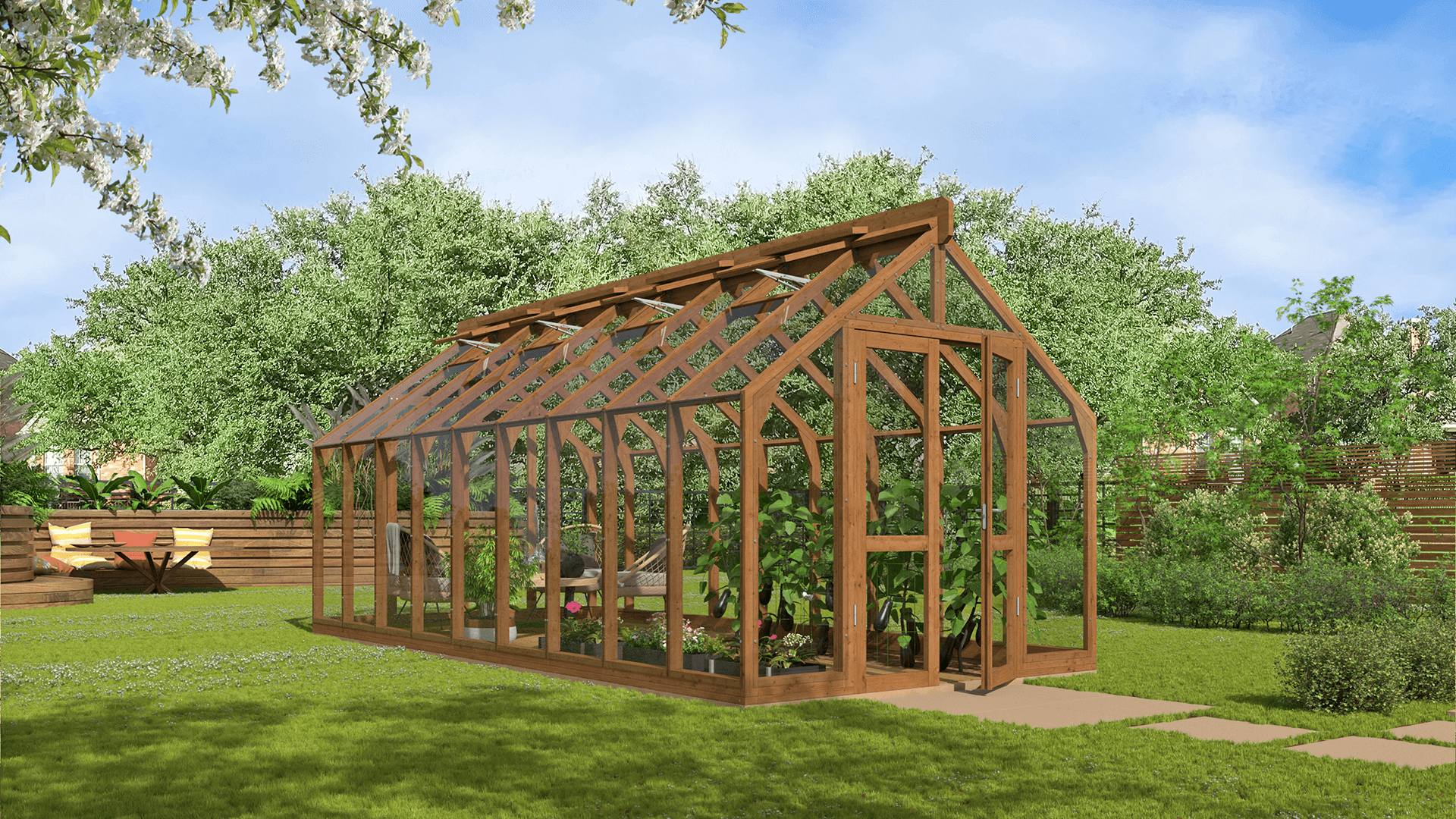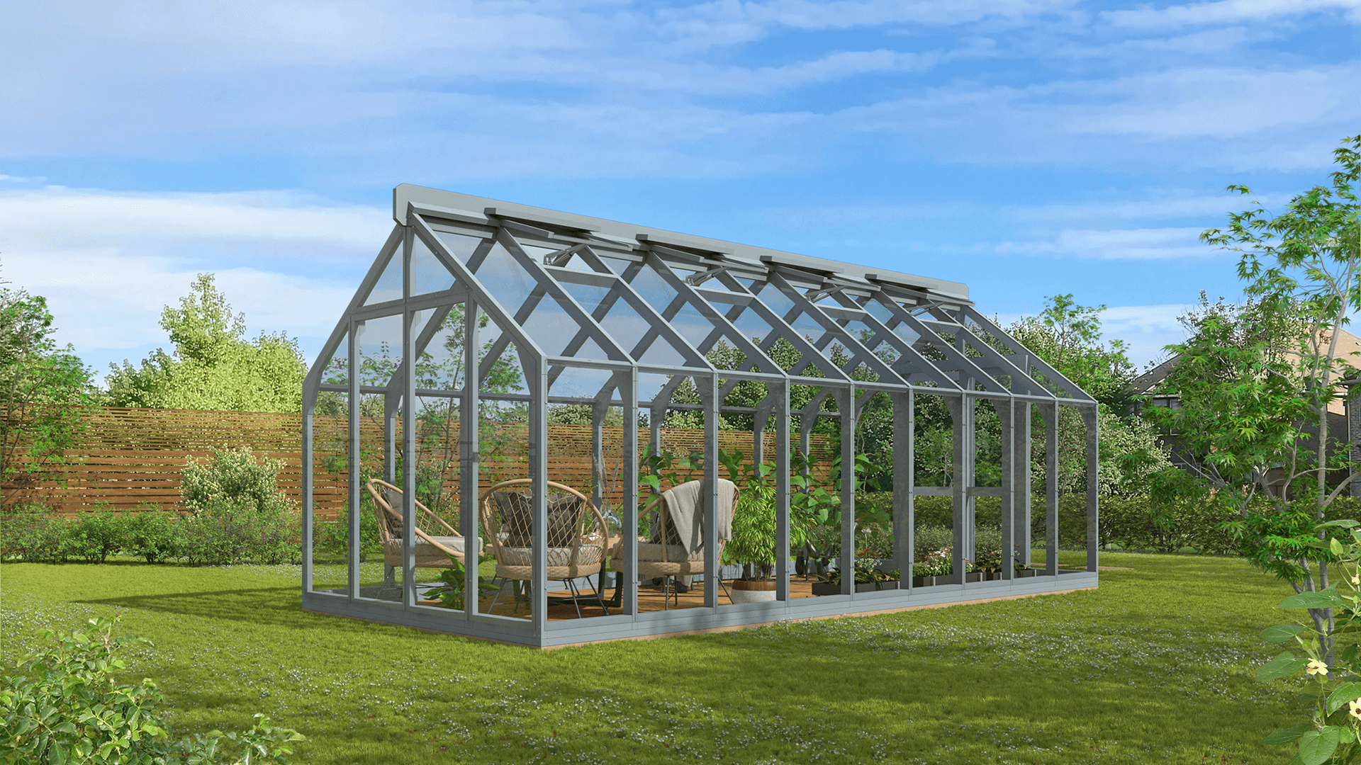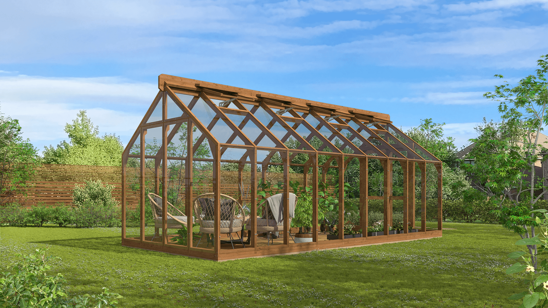 Lähe puidust kasvuhoone ei ole mõeldud ainult taimede kasvatamiseks – see võib olla hoopis kaunis aiapaviljon, kus saab keset rohelust lõõgastuda, einestada või külalisi võõrustada. Puidu loomulik soojus loob hubase ja kutsuva atmosfääri, muutes kasvuhoone elegantseks paviljoniks. Kasuta seda vaikse puhkepaigana, suvise söögitoa või loovtööruumina – see kohandub igaks aastaajaks ja sündmuseks. See on koht, kus aeg peatub.