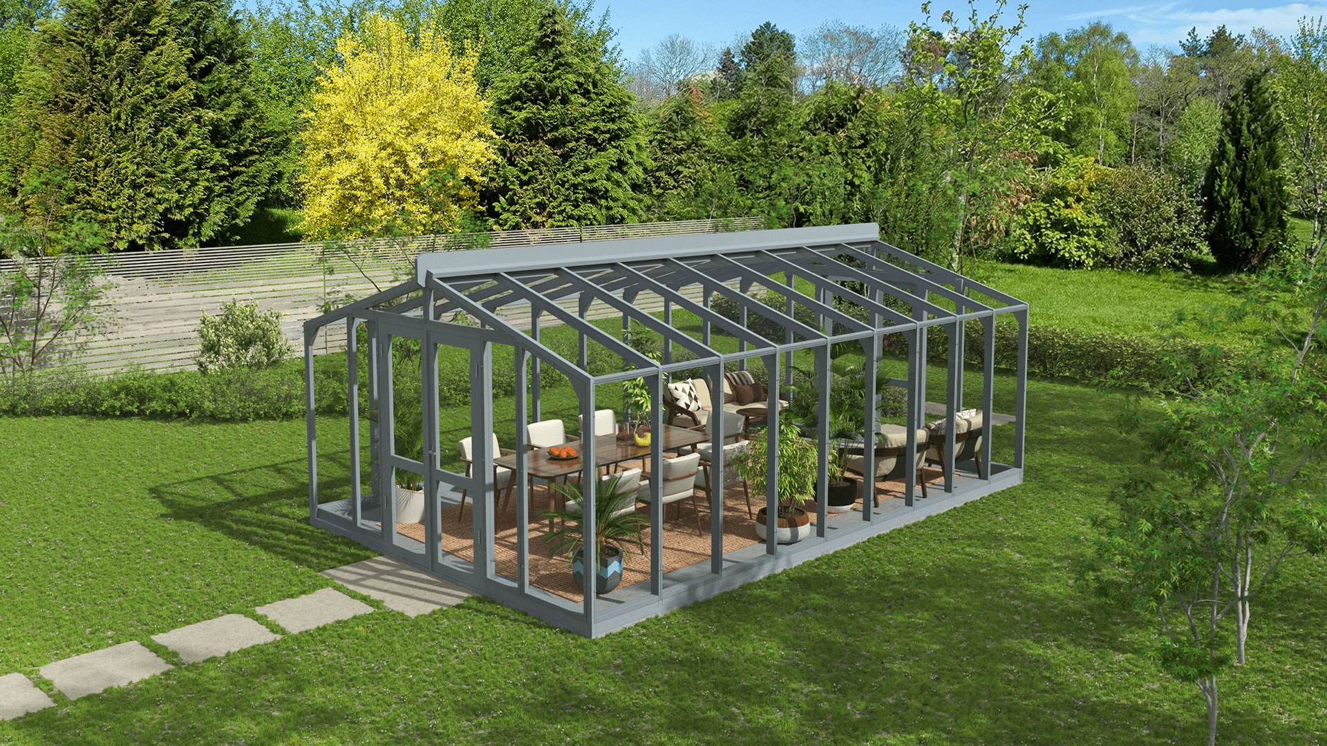 Paviljon XLP 9 on saadaval laias valikus kaunites toonides, et leiaksid just oma aiale ja stiilile sobiva värvi. Alates pehmetest looduslähedastest varjunditest kuni julgete ja silmapaistvate toonideni – iga valik harmoneerub just sinu aia stiiliga. Nii saad luua paviljoni, mis peegeldab sinu isikupära ja muudab aia tõeliselt enda maitse järgi loodud roheliseks oaasiks.